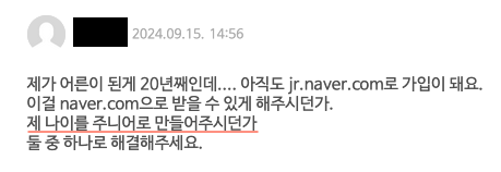 간혹, 네이버 로그인을 한 사용자 중에 @jr.naver.com 이메일 주소를 사용하는 경우가 보인다.